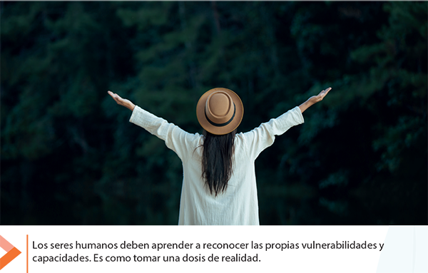 Sin embargo, reconocer genera miedo porque se ha aprendido que “se debe triunfar en todos los aspectos de la vida”: carrera, negocios, relaciones. “Todo mundo está esperando que triunfes y cuando te enfrentas al fracaso, como no se sabe qué hacer se obvia, se encapsula y no se nombra”. No aceptar la propia vulnerabilidad alimenta el miedo y reconocerla hace que este disminuya. Reconocer las propias vulnerabilidades y capacidades es tomar una dosis de realidad. Lo irreal es creer que se debe y puede cumplir con todas las expectativas externas.
