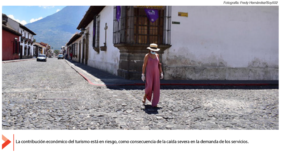 El sector turístico organizado en Guatemala ha calculado una pérdida proyectada de más de 2 mil 250 millones de quetzales en marzo-abril de 2020. Dentro de los giros de negocio que se están viendo afectados de forma inmediata destacan: líneas aéreas con operaciones en el país, hospedajes, operadores de turismo receptivo, agencias de viajes emisoras, mayoristas, transporte turístico, organizadores de eventos, escuelas de español, centros recreativos y culturales, parques arqueológicos, museos, recintos de eventos, restaurantes, guías de turistas, artesanos, tiendas, taxistas y una larga cadena de proveedores de servicios en las comunidades receptoras.