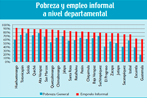 Los desafíos pobreza y empleo informal se magnifican en ciertos departamentos de la República; por ejemplo, Alta Verapaz, en donde el 78% de sus habitantes se encuentran en pobreza y el 89% de sus trabajadores labora de manera informal.