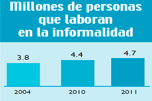 A medida que avanza el tiempo en Guatemala se incrementa el empleo informal, que en cuestión de 7 años ha crecido en 23.7%. En 2011 habían 900 mil personas más trabajando en informalidad que en 2004. (Ilust. 2)