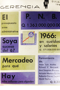 El producto nacional bruto de 1966 se ubicaba en un mil 363 millones de quetzales, según el Banco de Guatemala. Es decir que, aumentó 44 millones de quetzales en relación a 1965. Así también, la revista abordaba el potencial económico del frijol soya y del jocote marañón. Funcionarios del gobierno del presidente de ese entonces, Julio César Méndez Montenegro (+), opinaban que esta fruta podría ser exportada a gran escala y que su producción rendiría cuantiosas divisas. Con ello queda demostrado que, GERENCIA se formó como una revista de negocios que generaba contenido económico, en el que gozaba de preeminencia en el país la actividad agrícola.