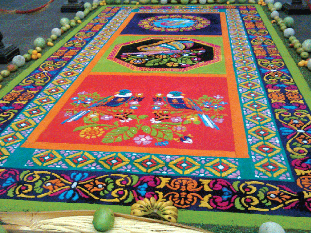 En esa oferta se combina el turismo religioso con otros destinos culturales, e incluye visitas al centro histórico de Guatemala, participación en la elaboración de alfombras, visita a los sagrarios el Jueves Santo en La Antigua, acompañamiento de las principales procesiones el viernes santo en la misma ciudad, visita a los altares en casas particulares, visita de un día a Tikal y visitas opcionales a san Juan Comalapa, Mixco Viejo o Iximché.