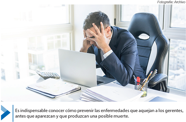 Si bien, hay enfermedades que aquejan a los gerentes de nuestros tiempos, es indispensable conocer cómo prevenirlas antes que produzcan una posible muerte.