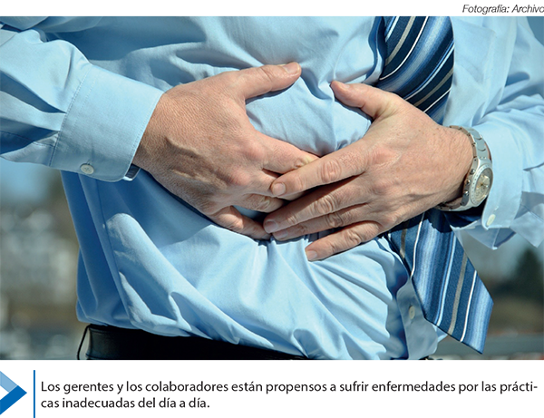 Según el Dr. Robert Piloto, del Executive Health Program, de Cleveland Clinic Florida, dentro de las enfermedades más comunes que sufren los gerentes está la presión alta, pre-diabetes/diabetes, obesidad, colesterol alto, enfermedad de las arterias coronarias, abuso de alcohol y tabaco, agotamiento y depresión.