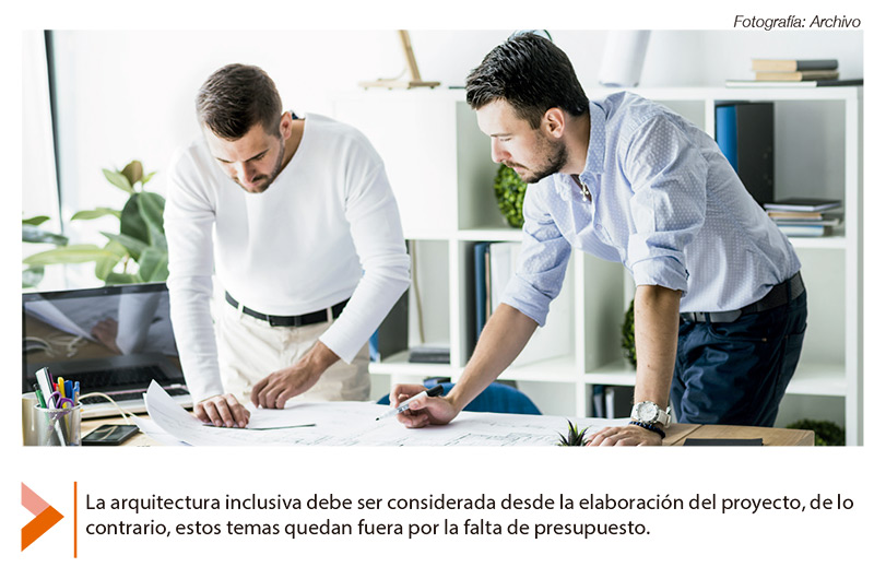 Por último, ambos profesionales recomiendan a los desarrolladores o pro- motores de construcciones considerar la arquitectura inclusiva como una in- versión, ya que su patrimonio será más amigable con todos los sectores.