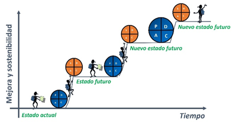 El ciclo PDCA de mejoría se utiliza para desafiar la mejora de resultados. En el ciclo se requiere ejecutar 8 pasos.
