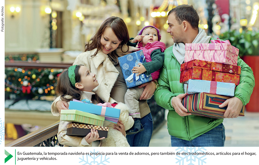 En Guatemala la temporada es propicia para la venta de adornos, pero también para las ventas de electrodomésticos, artículos para el hogar, juguetería y vehículos, según cuenta el directivo de la CCG, quien añade que en los últimos años se ha incrementado la compra a través de medios electrónicos. Por ello, para los servicios de Courier, noviembre es el mes más importante.