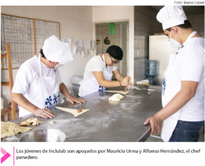 Inclulab es un centro de formación para inclusión laboral, donde potencian las habilidades de cada joven para incluirlos en el ámbito laboral. Durante la etapa de aprendizaje se les ubica en la panadería y pizzería. Todos los días, Urrea prepara los materiales y mezclas desde la madrugada junto al panadero, y a las 8 de la mañana llegan los jóvenes que hacen el francés, las champurradas y los demás bocadillos.