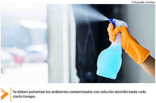 – Es de vital importancia la correcta limpieza de las instalaciones, los equipos y las superficies de cada servicio. Eso incluye chapas, puertas y cualquier superficie que pudo haber sido tocada con las manos. Los virus se inactivan en pocos minutos con desinfectantes a base de hipoclorito sódico-lejía. Se debe cuidar la eficacia de los desinfectantes. No debe quedar humedad en ninguna superficie. Se deben pulverizar los ambientes con solución desinfectante cada cierto tiempo.