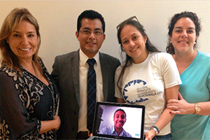 Karla Ruíz Cofiño, fundadora de Global Shapers Guatemala, acompañada de Juan Manuel Robles y Álex Poulias.