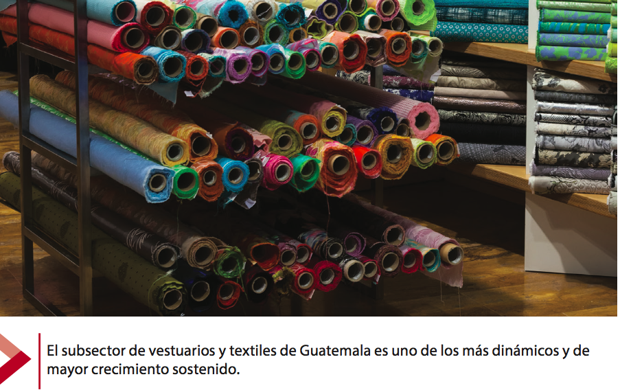 De acuerdo con Estrada, el subsector de vestuarios y textiles es en el país uno de los más dinámicos y de mayor crecimiento sostenido. Y las cifras lo respaldan pues, según el Banco de Guatemala (Banguat), entre enero y junio de este año ha exportado US$812 millones, equivalentes al 14.58% del total de las exportaciones del país. Pero eso no es todo, ya que es importante resaltar que esa cifra le ha representado un crecimiento del 4.9% por ciento respecto al mismo período del año anterior.