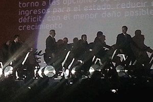 Una especie de sección de gimnasio, con bicicletas estacionarias, sirvió de marco para el efecto, pues empresarios y funcionarios se montaron a pedalear, mientras una pantalla demostraba cómo los aspirómetros corrían para llegar a las metas propuestas por el plan empresarial: Reducir la pobreza al 35 por ciento de aquí a 2021.