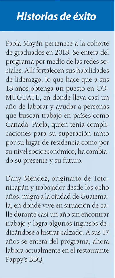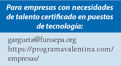 Como respuesta a esta necesidad, la Fundación Sergio Paiz (Funsepa), ejecuta desde 2017 el programa Valentina. Este nace para “solventar el desempleo y subempleo de jóvenes”, por medio de una propuesta de capacitación, certificación y colocación de talento “en empleos de valor, que apoyan a las empresas y a los jóvenes a cumplir con sus metas de crecimiento”.